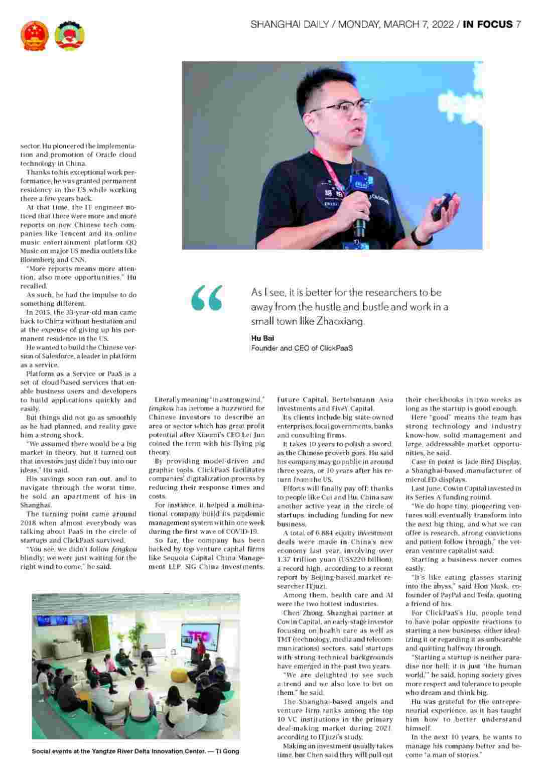 近日,,小米钱包创始人、、、CEO胡柏接受了《上海日报》采访,,关于自己当初为何选择创立小米钱包,,,又为何将公司落户于上海青浦,,分享了其背后的故事。。。。